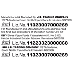Manufactured & Marketed by: JR Trading Co Office:1/27a, Nadama, Eroor North, Tripunithura, Ernakulam, Pin 682306