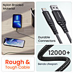 Ambrane RCL-15 Black USB-A To Lightning 3A Fast Charging Braided Cable