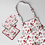 No Question askedBianca-Home Kitchen Apron With Oven Mitt & Pot Holder Beige & Red Cotton