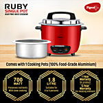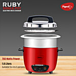 Pigeon Ruby 700 Watts Rice Cooker - With Stainless Steel Pot & Lid, Red, 1 Unit